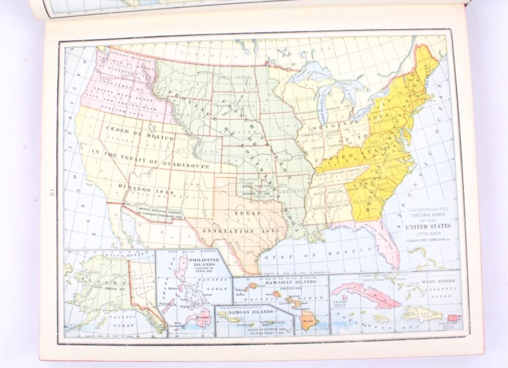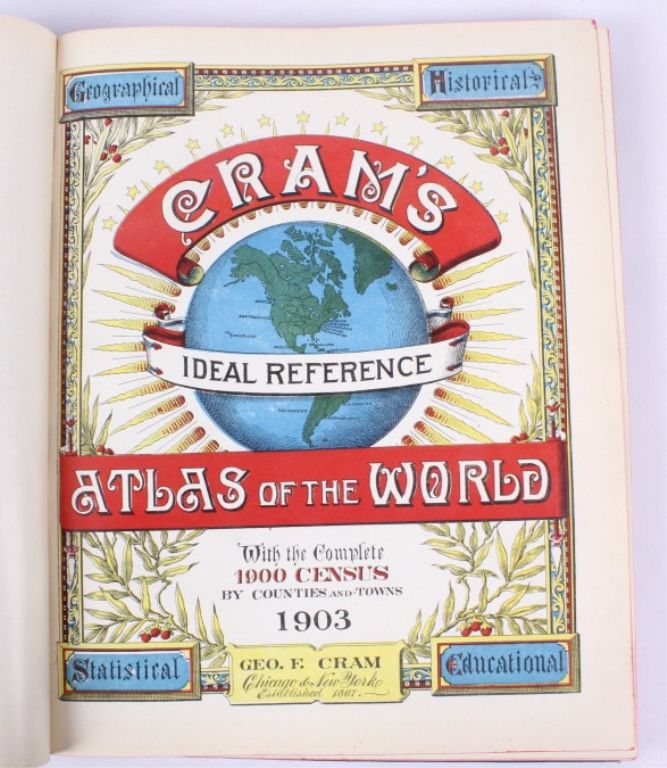 This lot features a colorful world atlas by George Cram. It was published for Butte Inter-Mountain, which operated in Butte from 1901-1912. This atlas is in excellent condition. It is vibrantly colored.