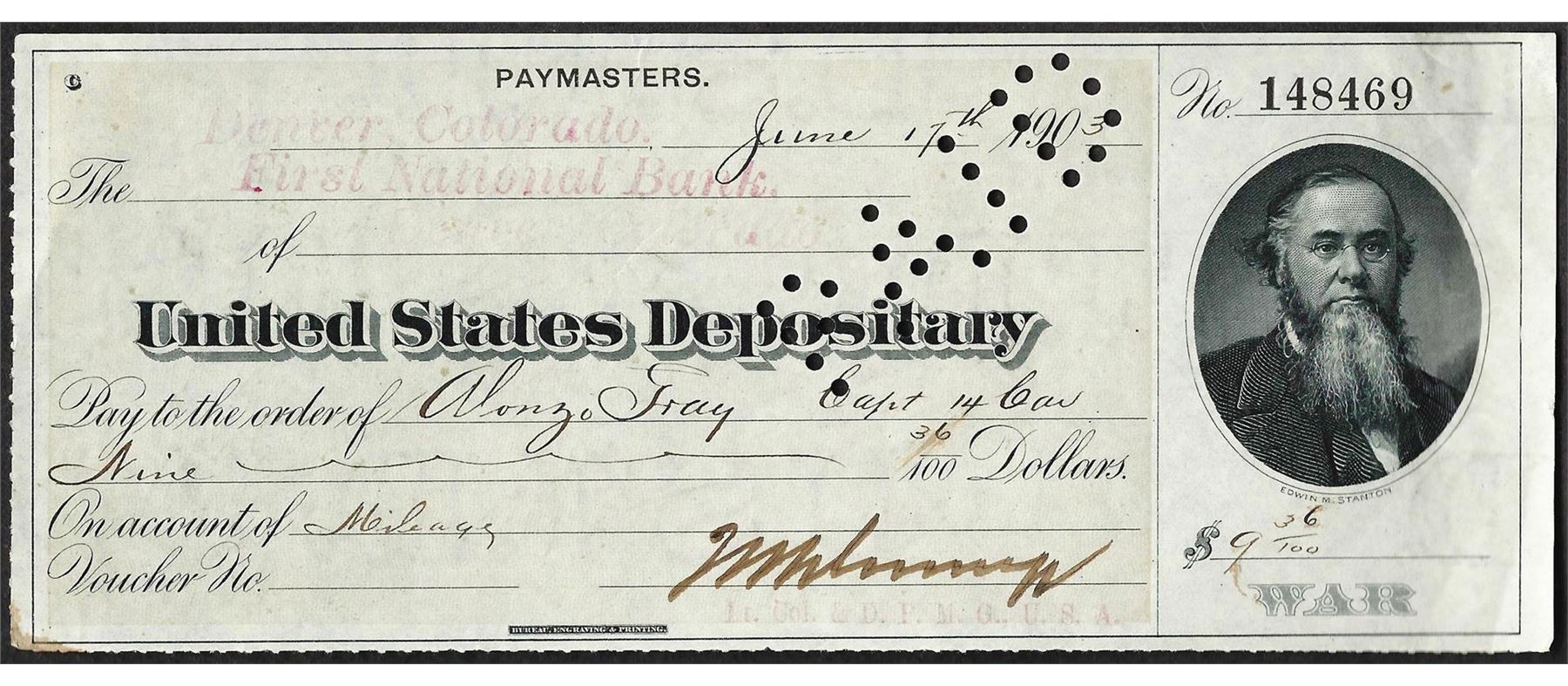 One 1903 Denver Colorado First National Bank Script.