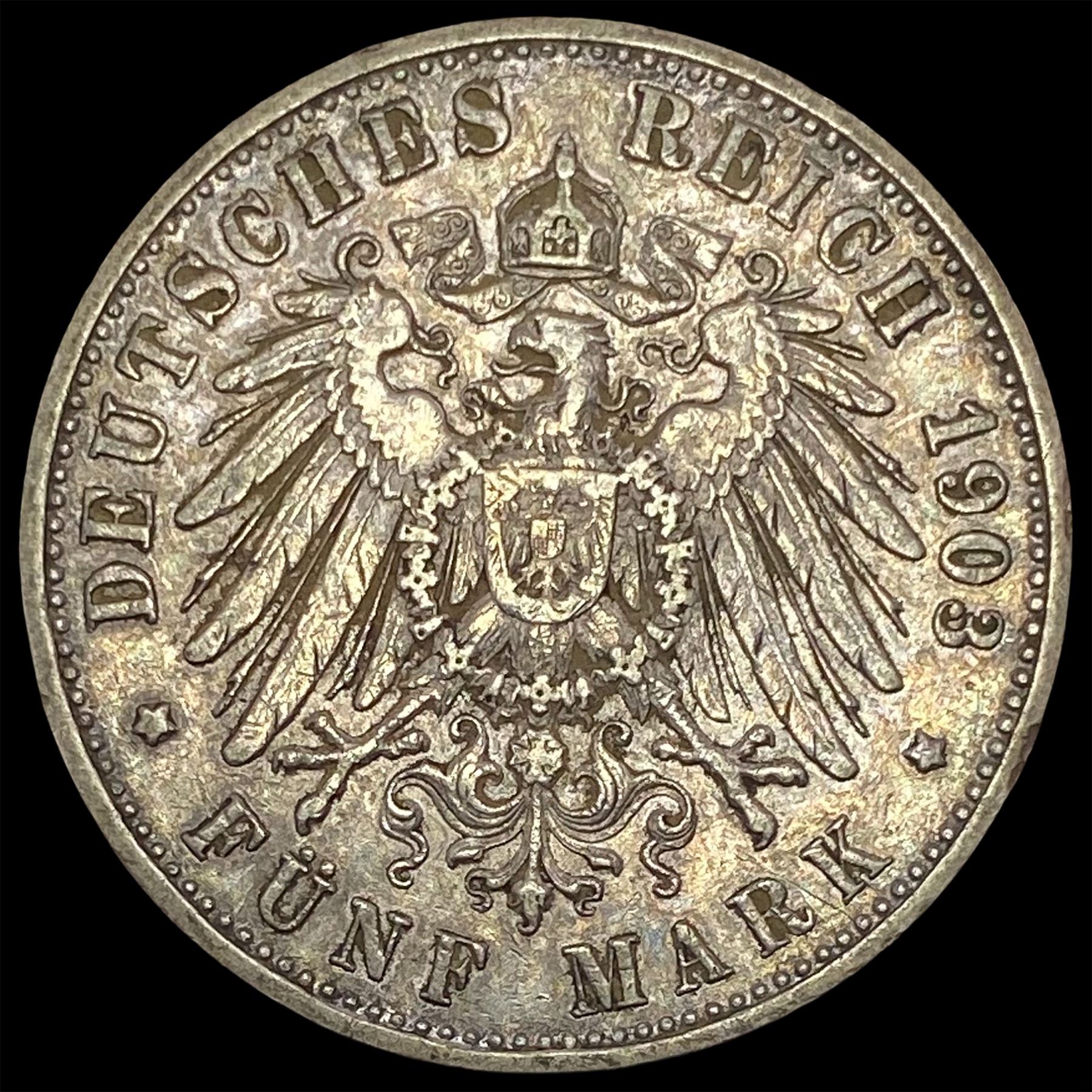 1903-F Wurttemberg Silver 5 Reichsmark NEARLY UNCIRCULATED