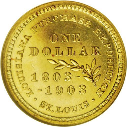 <B>1903<G$1> Louisiana Purchase/Jefferson MS66 NGC.</B></I> Bright and flashy, with intense mint frost. A couple of coppery-red alloy spots are noted on each side, but they are almost too small to detect without the aid of magnification. Expertly preserved with superior eye appeal.