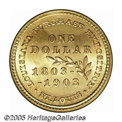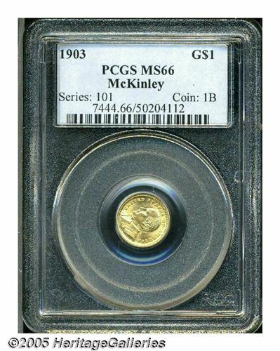 <B>1903<G$1> Louisiana Purchase/McKinley MS66 PCGS.</B></I> Intricately detailed with radiant, totally original surfaces that are temptingly close to a Superb classification, being kept from that higher level by a few tiny frost breaks on McKinley's coat.