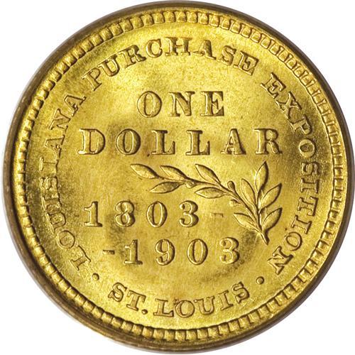 <B>1903 G$1 Louisiana Purchase/McKinley MS67 PCGS.</B></I> An impressive Superb Gem, with fully detailed obverse and reverse designs and highly lustrous yellow-gold frost. Slight traces of orange toning are evident with close examination, adding to the overall eye appeal of this remarkable piece. Population: 69 in 67, 1 finer (4/07).<BR><BR><b>Shipping:</b> Coins & Currency (<a target="_blank" href="http://www.heritageauctions.com/common/shipping.php">view shipping information</a>)