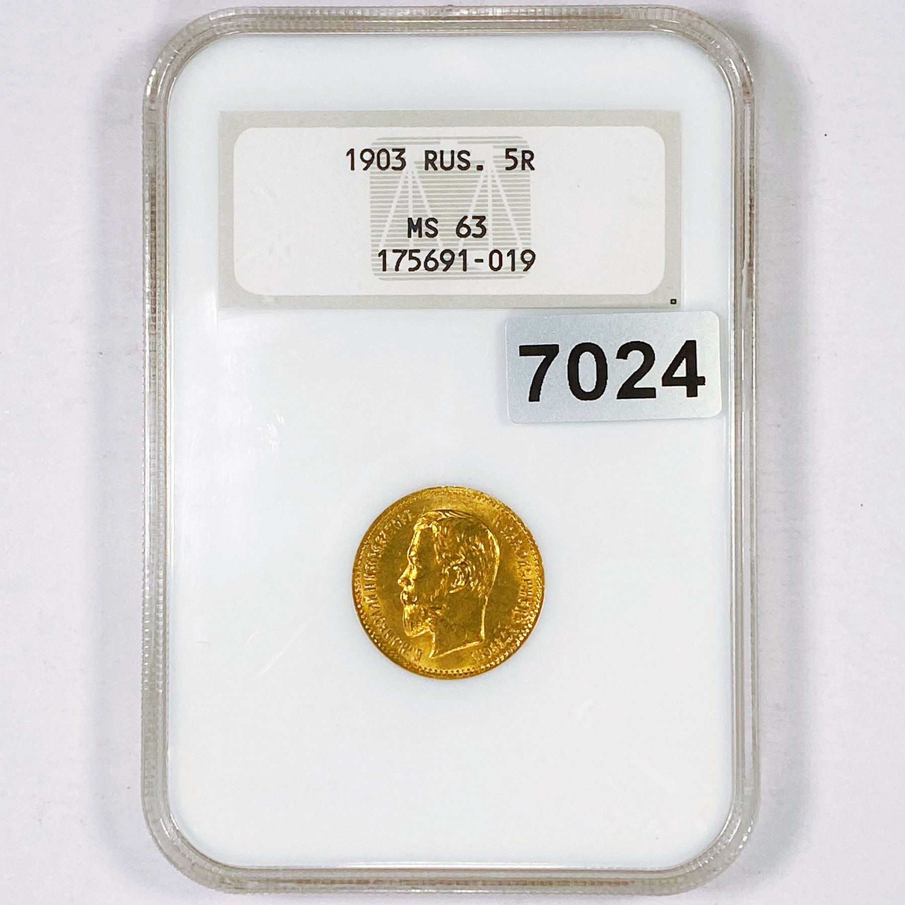 1903 Gold Russian 5 Roubles NGC - MS63