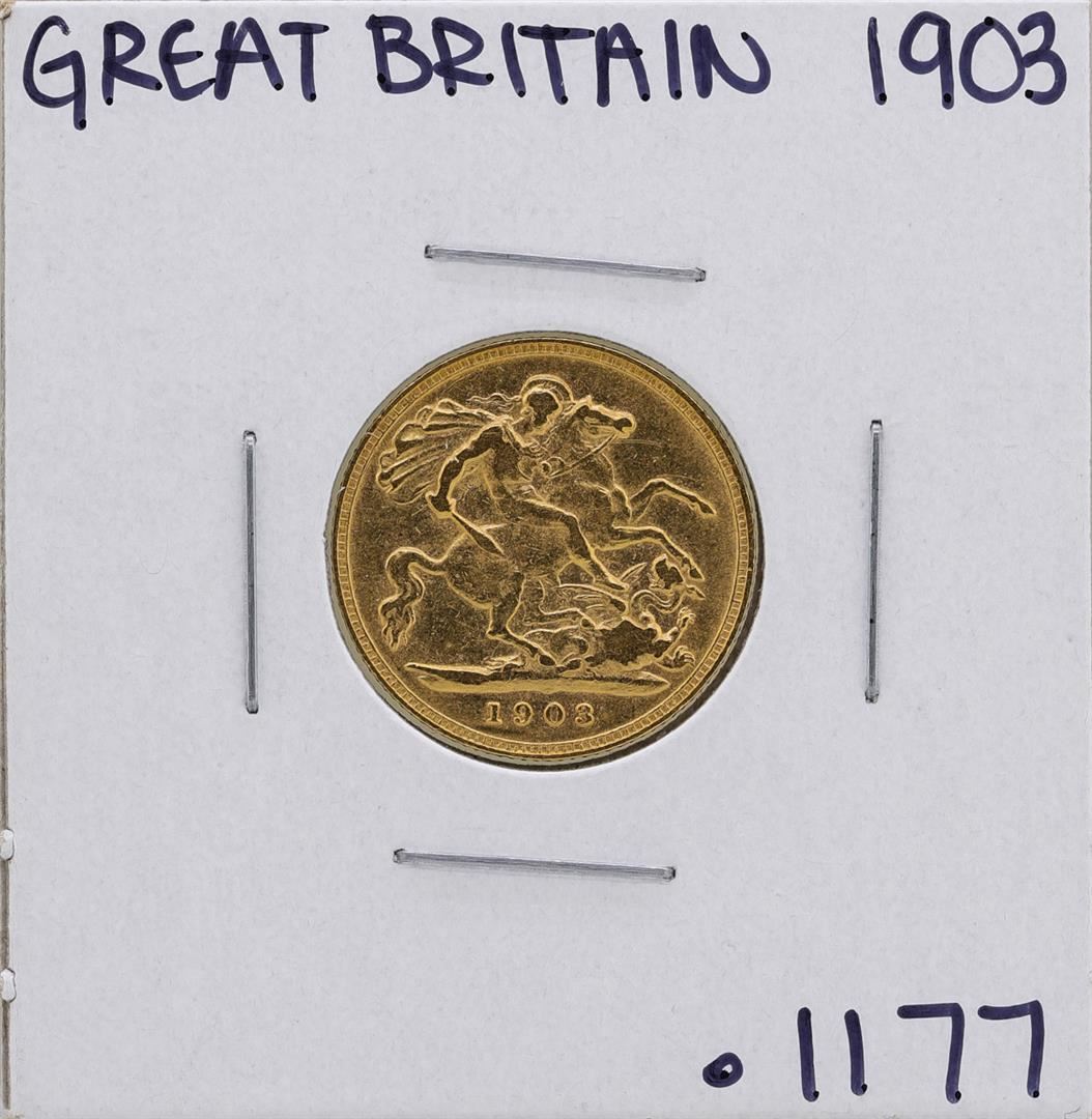 One 1903 Great Britain 1/2 Sovereign Gold Coin.