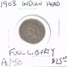 1903 INDIAN HEAD PENNY FULL LIBERTY RED BOOK VALUE IS $25.00 *EXTREMELY RARE AU-50 HIGH GRADE**!! ***Coin, Currency & All Items Listed in this auction - Grades, Conditions and Values are not Safe Deposit Coins LLC Responsibilty. Grades, Condition and Values are determined by Consigner(s) & Buyers ONLY