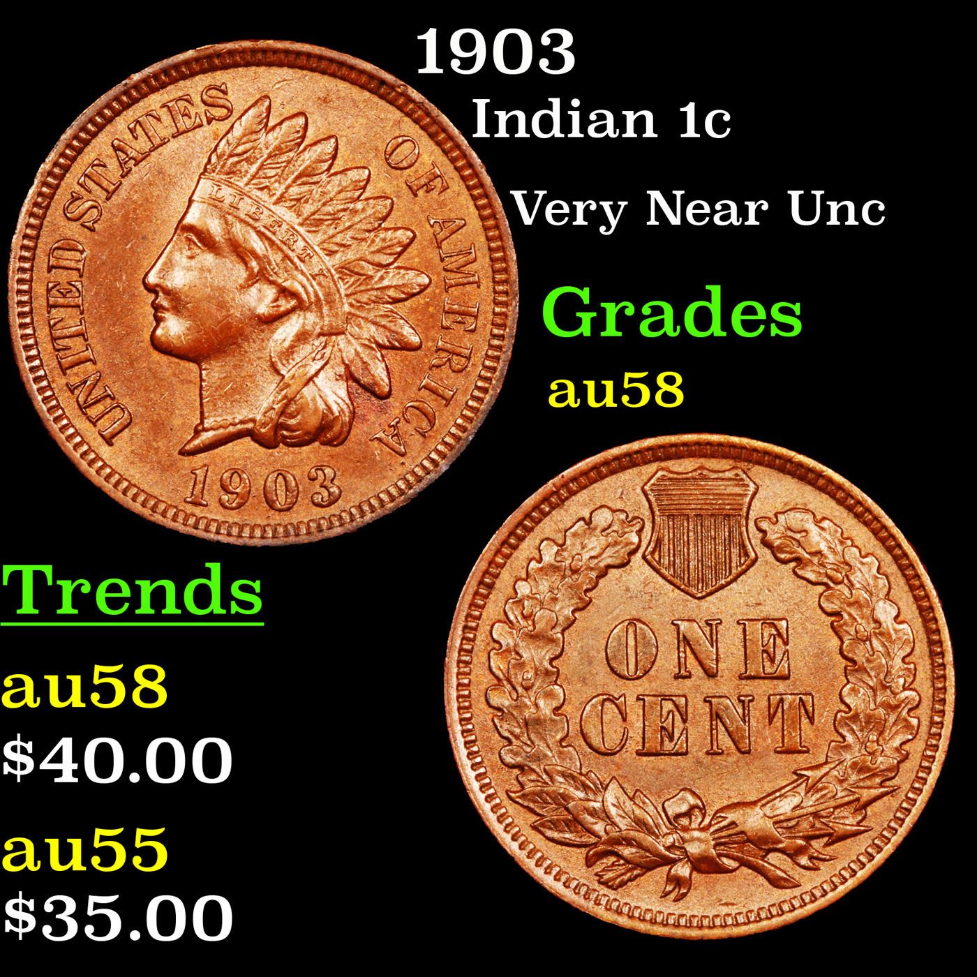 1903 Indian Cent 1c Graded Choice AU/BU Slider.