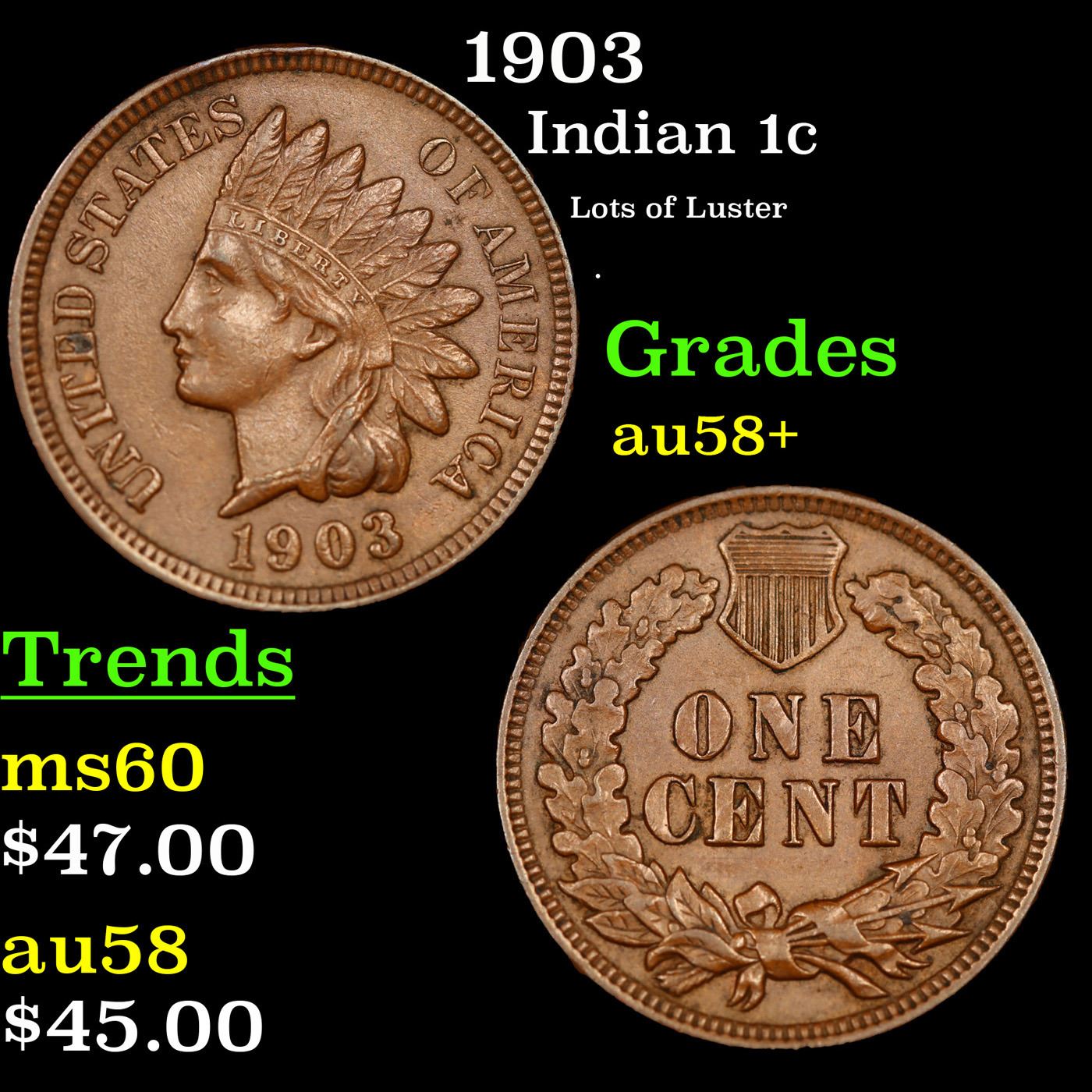 1903 Indian Cent 1c Grades Choice AU/BU Slider+.