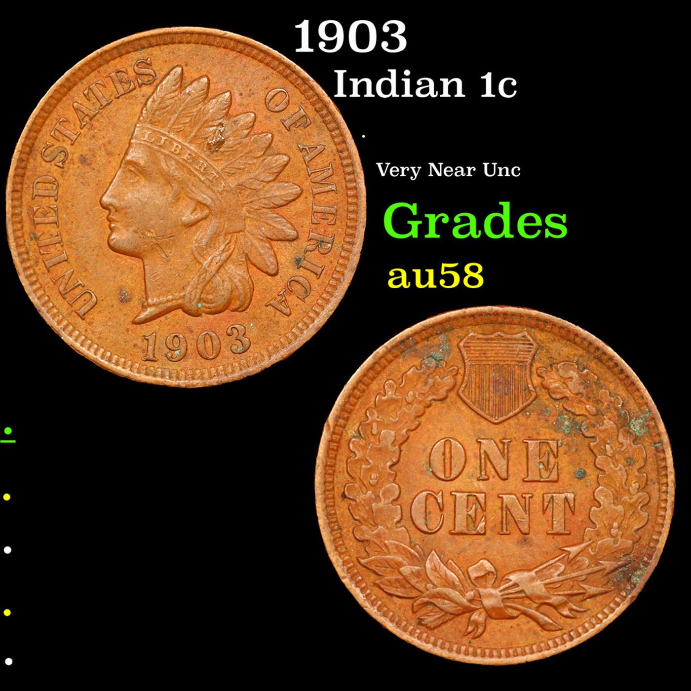 1903 Indian Cent 1c Grades Choice AU/BU Slider.
