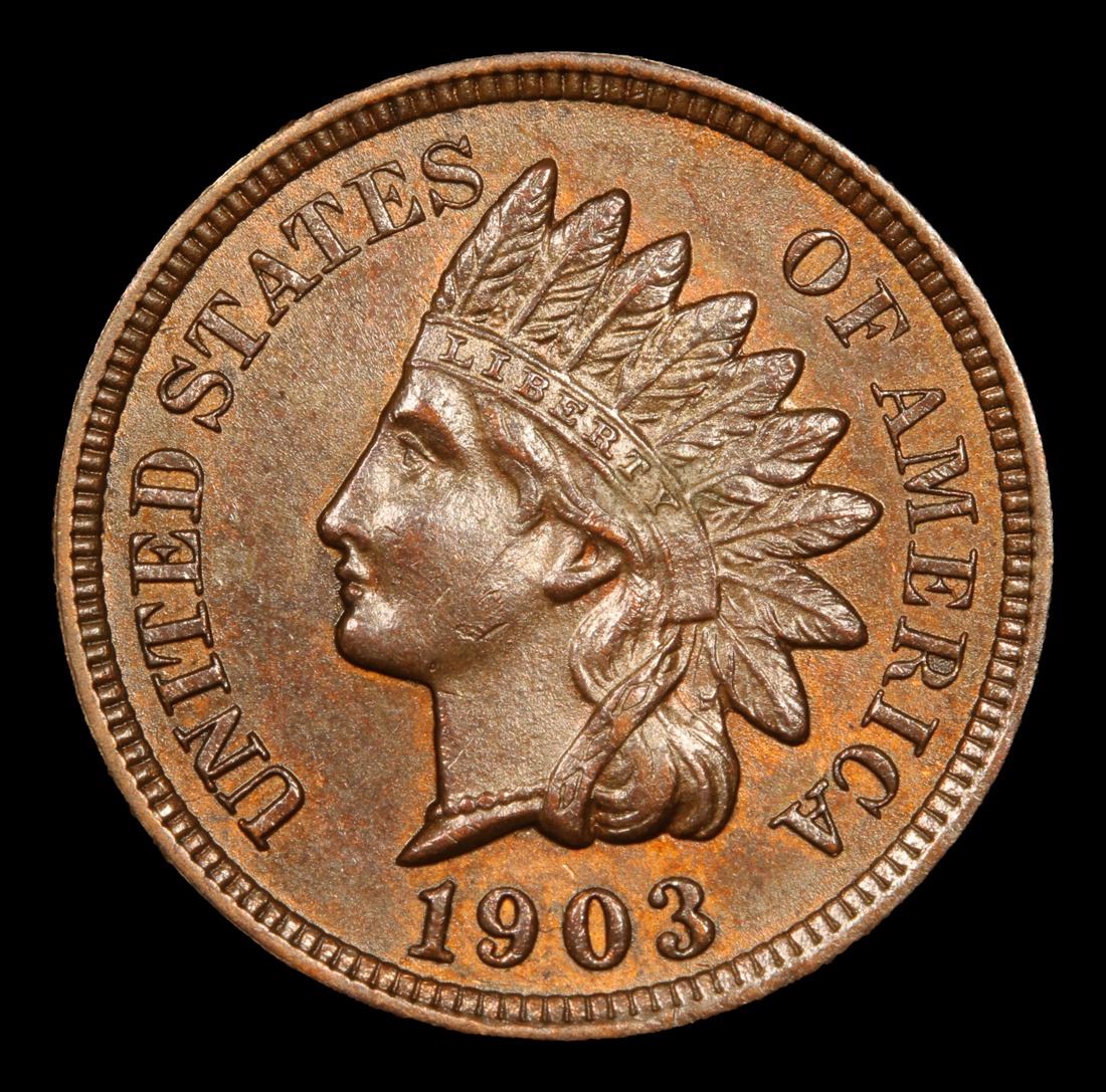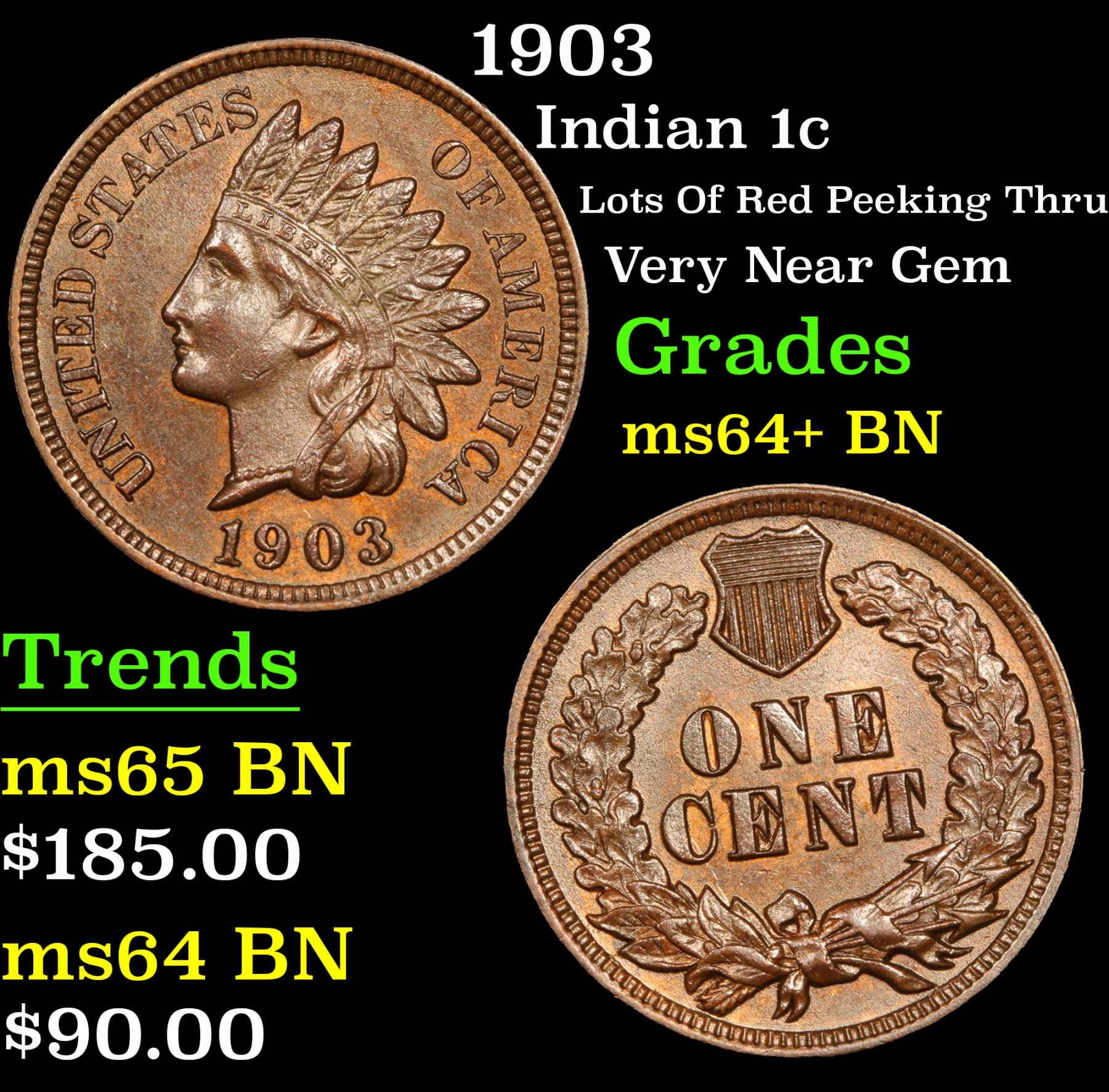 1903 Lots Of Red Peeking Thru Very Near Gem Indian Cent 1c Grades Choice+ Unc BN.