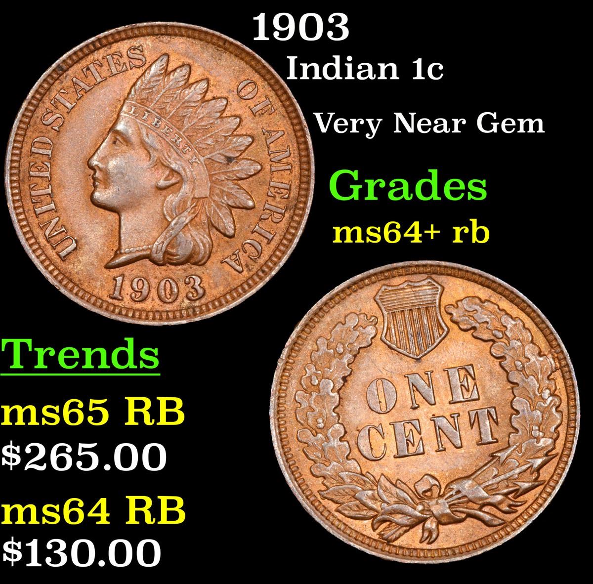 1903 . Very Near Gem Indian Cent 1c Grades Choice+ Unc RB.