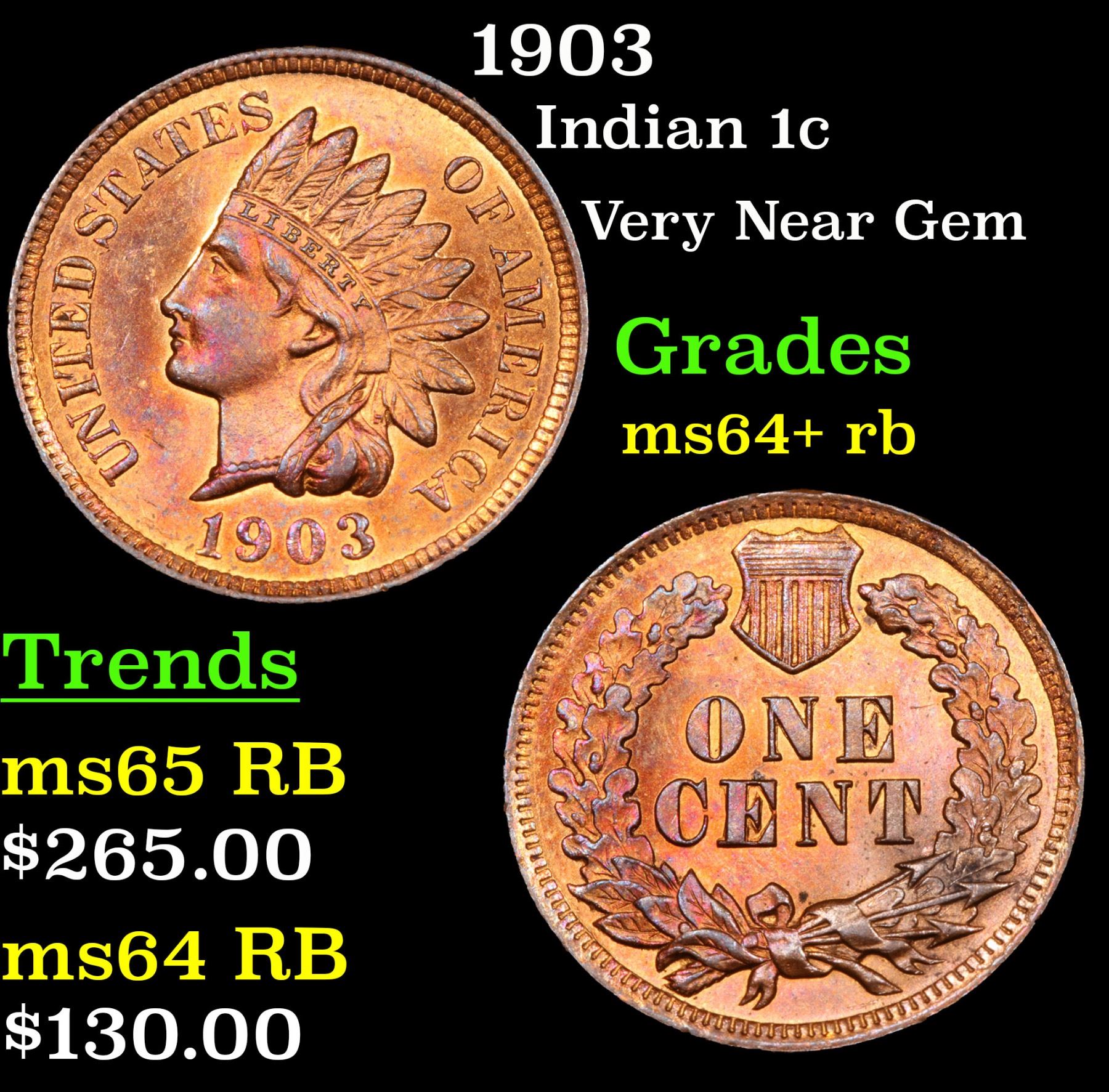 1903 . Very Near Gem Indian Cent 1c Grades Choice+ Unc RB.