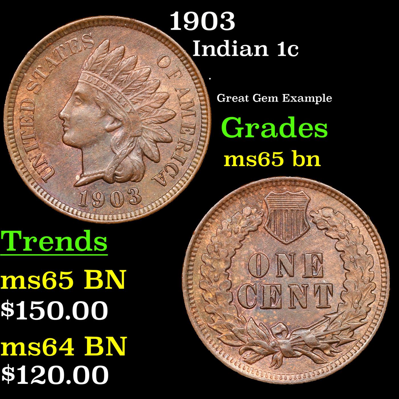 1903 Indian Cent 1c Grades GEM Unc BN.