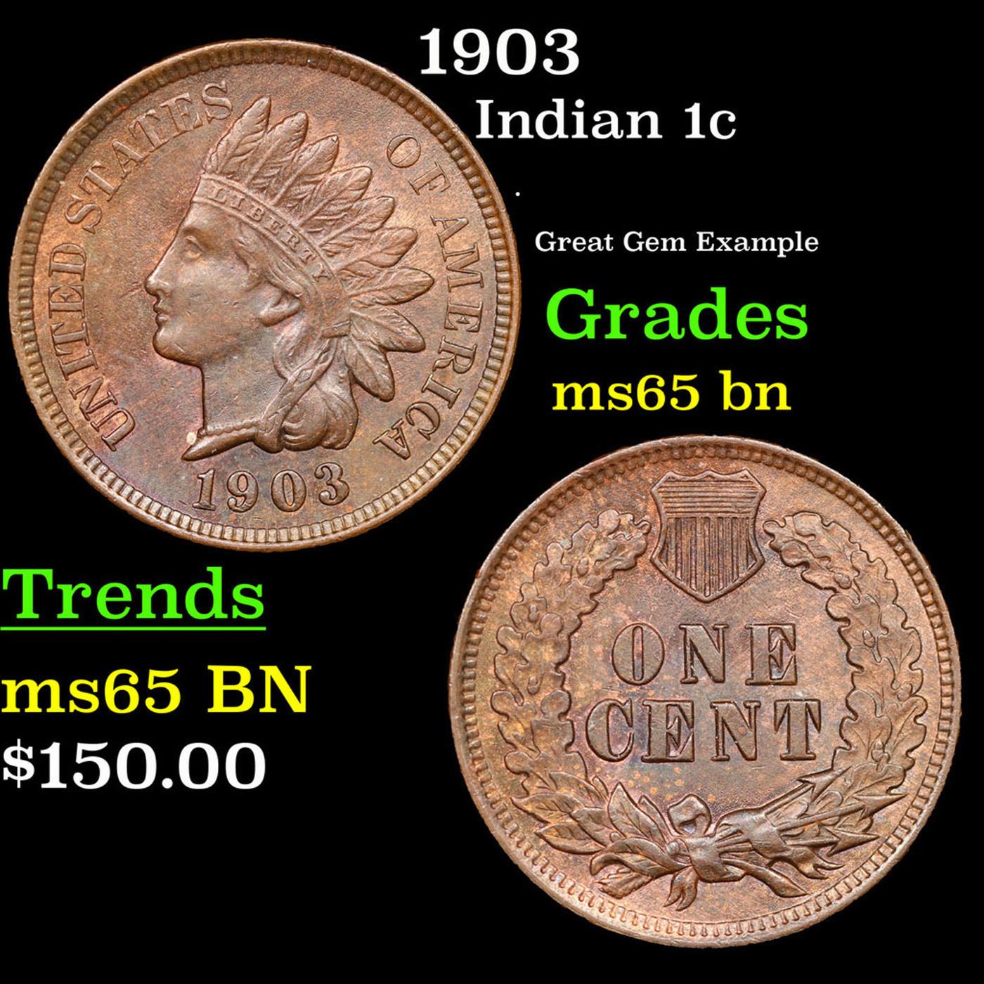 1903 Indian Cent 1c Grades GEM Unc BN.