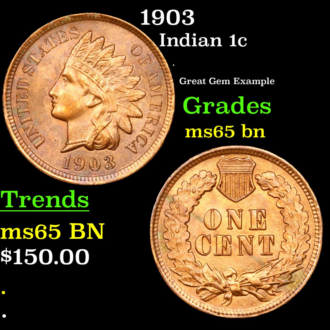 1903 Indian Cent 1c Grades GEM Unc BN.