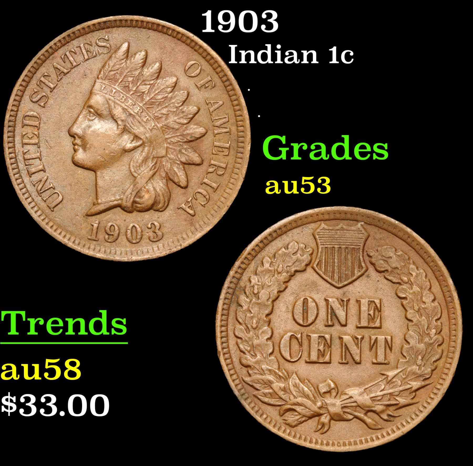 1903 . . Indian Cent 1c Grades Select AU.