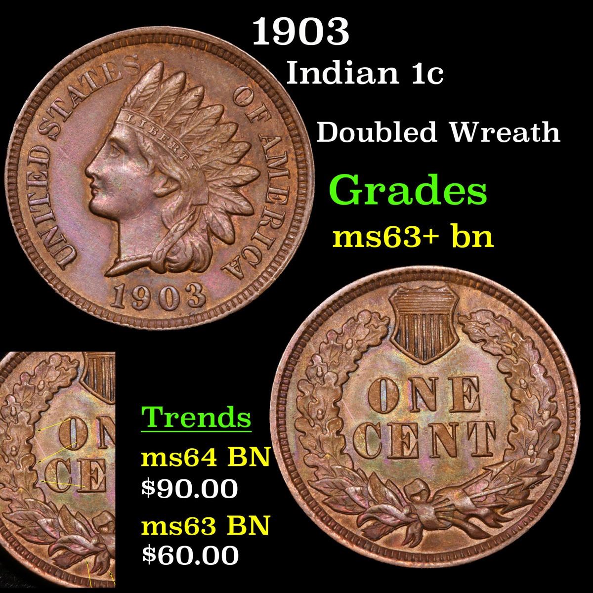 1903 Doubled Wreath . Indian Cent 1c Grades Select+ Unc BN.