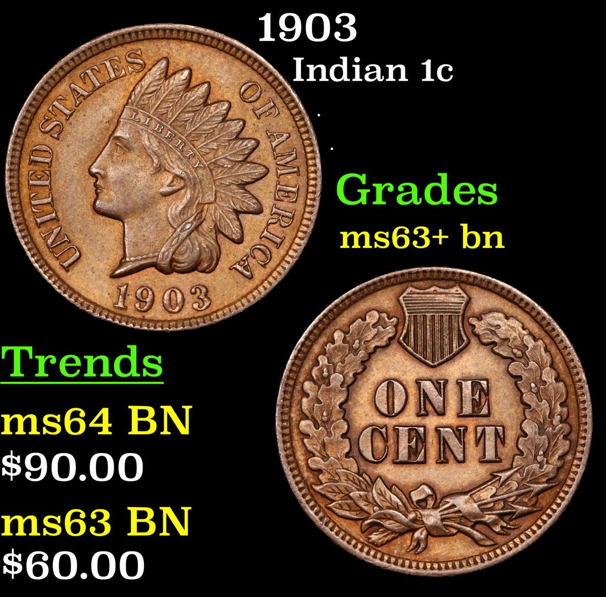 1903 . . Indian Cent 1c Grades Select+ Unc BN.