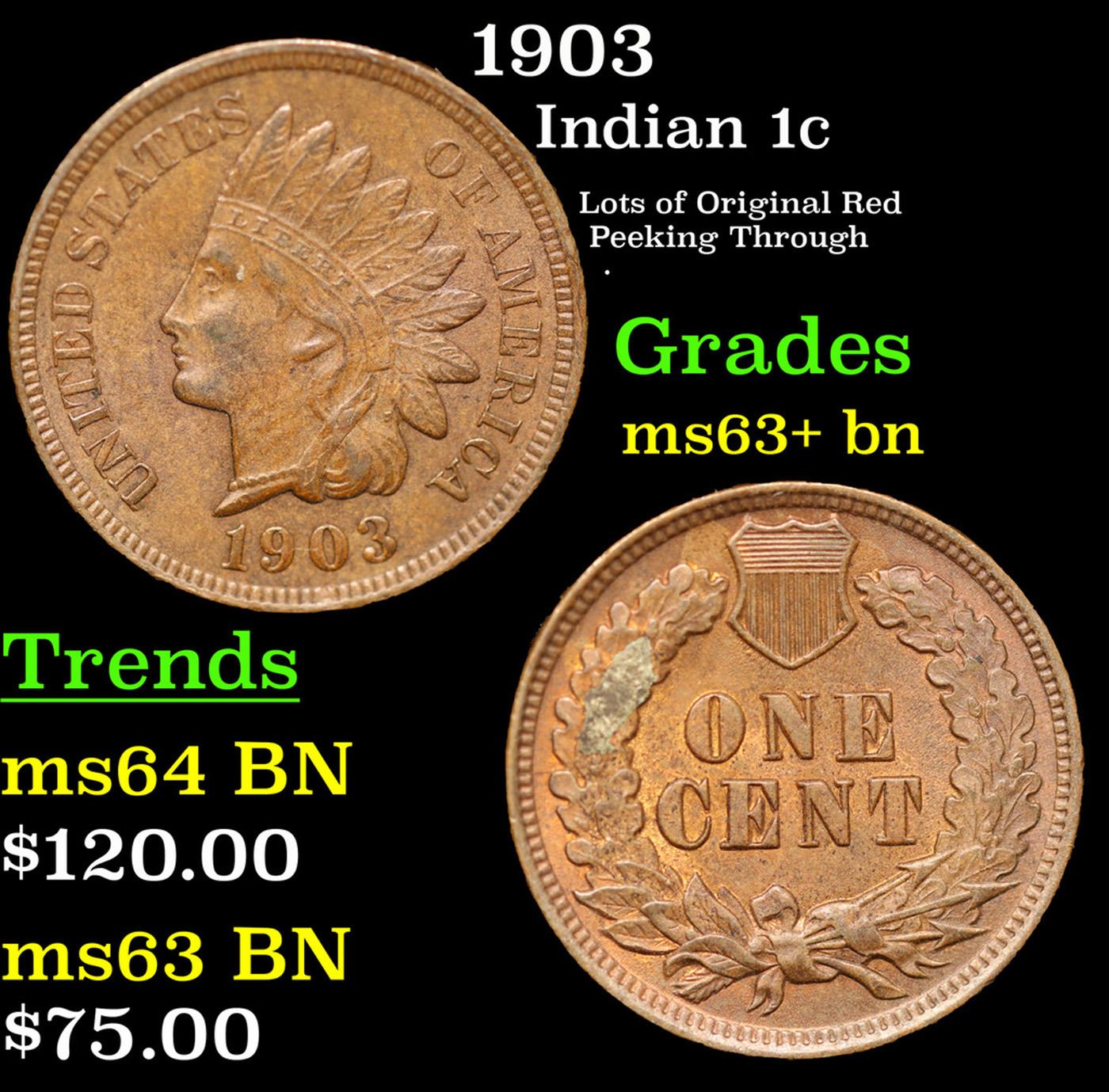 1903 Indian Cent 1c Grades Select+ Unc BN.