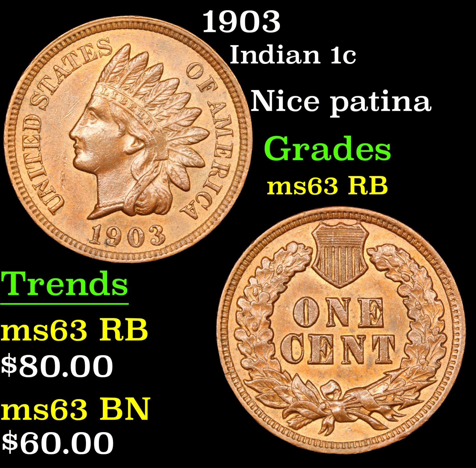1903 Indian Cent 1c Grades Select Unc RB. Nice patina