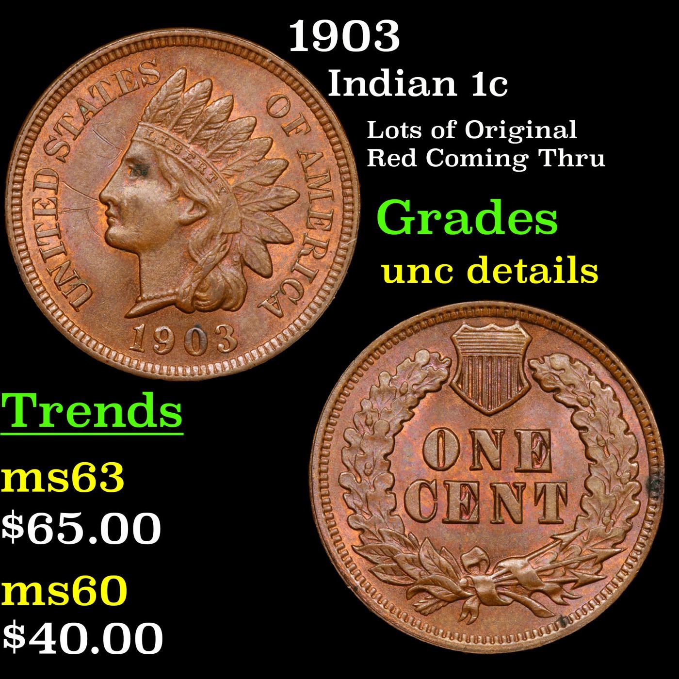 1903 Indian Cent 1c Grades Unc Details.
