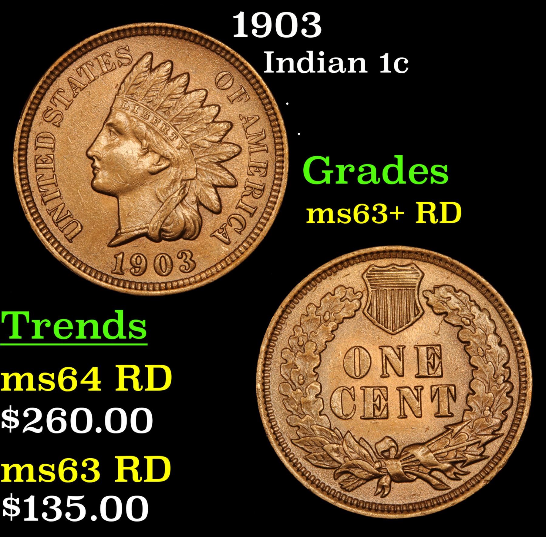 1903 . . Indian Cent 1c Grades select Unc+ rd.