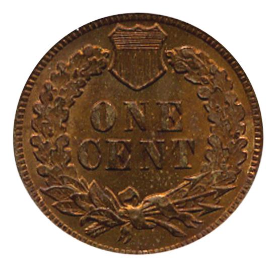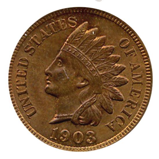 Excellent MS63 piece with golden toning and struck-thru grease error on Indian's cheek; $100bv
