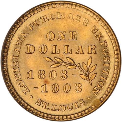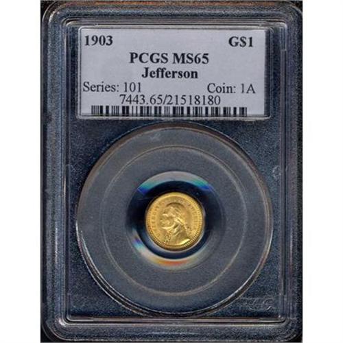 <b>1903 Louisiana Purchase-Jefferson Gold Dollar. PCGS graded MS65.</b> A Gemmy example of this Type, the fields being frosty and bright, the designs boldly struck and well detailed <b>(PCGS # 7443)</b> <i>