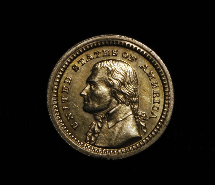 Terrific example of this scarce Gold commemorative. Issued in 1903 to celebrate the 100th anniversary of the Louisiana purchase. This commemorative was issued with two obverses and one reverse. The two Obverses are the Jefferson and the other is the McKinley. Jefferson the obvious 1st choice as he was the president at the time of the purchase from France and the 2nd choice was McKinley, who had died in office a year prior and had been the one who originally signed the legislation for the minting of the coin. Coin World's Coin Values lists ms64 at $1500 and The Wholesale Greysheet lists ms64 at $1200. Estimated Value $1250