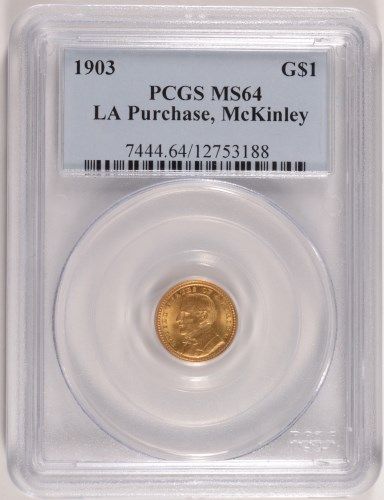 1903 LA. PURCHASE, McKINLEY GOLD, PCGS MS-64 VERY NICE