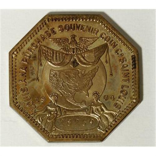 <B>1903 Louisiana Purchase Octagonal, HK-306, MS60 Uncertified.</B></I> Stamped with serial number 28269. Prooflike surfaces yield a medley of orange, yellow, and cobalt-blue color.<BR><BR><b>Shipping:</b> Coins & Currency (<a target="_blank" href="http://www.heritageauctions.com/common/shipping.php">view shipping information</a>)