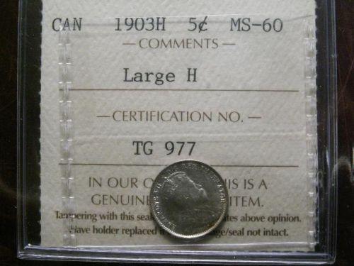 1903 Large H5¢ ICCS MS60. Full white in colour.