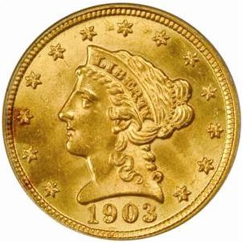 <style type="text/css"> body, td, th { font-family: Arial, Helvetica, sans-serif; font-size: 12px; color: #482424; margin: 0px; padding: 0px; } #header { background-image: url(http://www.bowersandmerena.com/ebay/images/template_v3_01.gif); clear: both; background-color: #590303; border-top-width: 2px; border-top-style: solid; border-top-color: #B38C4F;}#header #header_wrapper { height: 75px; clear: both; width: 800px; margin-right: auto; margin-left: auto; background-image: url(http://www.bowersandmerena.com/ebay/images/template_v3_03.gif); background-repeat: no-repeat; background-position: right; color: #F3EDCC;}#header #header_wrapper #header_logo { float: left; height: 75px; width: 444px; background-image: url(http://www.bowersandmerena.com/ebay/images/template_v3_02.gif); background-repeat: no-repeat; font-size: 10px; text-transform: capitalize; color: #B38C4F;}#header #header_wrapper #header_right { float: left; height: 75px; width: 356px; text-align: right;}#header #header_wrapper #header_right #headerLoginBtn { margin-bottom: 30px;}#header #header_wrapper #header_right input#txtSearch { color: #B49056; border: 1px solid #B49056; width: 175px; padding-top: 3px; padding-right: 3px; padding-bottom: 4px; padding-left: 3px;}#nav { height: 37px; background-image: url(http://www.bowersandmerena.com/ebay/images/template_v3_05.gif); clear: both;}#nav #nav_wrapper { height: 35px; width: 800px; margin-right: auto; margin-left: auto; border-left-width: 1px; border-left-style: solid; border-left-color: #B38C4F;}#nav #nav_wrapper a { padding-right: 15px; padding-left: 15px; border-right-width: 1px; border-right-style: solid; border-right-color: #B38C4F; height: 25px; padding-top: 10px; display: block; float: left; text-decoration: none; font-weight: bold; color: #5D0303;}#nav #nav_wrapper a:hover { color: #B38C4F;}#nav #nav_wrapper #search { float: right; padding-top: 7px;}#nav #nav_wrapper #search #txtSearch { font-family: Arial, Helvetica, sans-serif; font-size: 10px; text-transform: uppercase; color: #D2AE75; border: 1px solid #B38C4F; padding: 3px;}#content_bgd { background-image: url(http://www.bowersandmerena.com/ebay/images/template_v3_09.gif); background-repeat: repeat-y; background-position: center; padding-top: 15px; padding-bottom: 15px; background-color: #FBFBDB;}#content_wrapper { clear: both; height: auto; width: 800px; margin-right: auto; margin-left: auto;}.LotDetailWhite{ line-height:normal; font-size:13px; font-family: arial,helvetica,sans-serif; color: White; font-weight: bold;}.LotDetailInformation{ line-height:normal; font-size: 13px; font-family: arial,helvetica,sans-serif;}.LotDetailMessage{ line-height:normal; font-size: 13px; font-family: arial,helvetica,sans-serif; color: red;}}tr.HeaderAuctionTitle td { color: #000000; font-weight: bold; padding: 2px; background-image: url(http://www.bowersandmerena.com/ebay/images/template_v3_05.gif); background-repeat: repeat-x; border-bottom-width: 1px; border-bottom-style: solid; border-bottom-color: #B38C4F;}table.AuctionSummary a, table.AuctionSummary a:link, table.AuctionSummary a:visited { color: #0000FF; text-decoration: none;}}td.tableHeaderLeft { border-left-width: 1px; border-left-style: solid; border-left-color: #B38C4F;}td.tableHeaderRight { border-right-width: 1px; border-right-style: solid; border-right-color: #B38C4F;}td.tableCellMiddle { border-left-width: 1px; border-left-style: solid; border-left-color: #B38C4F; border-right-width: 1px; border-right-style: solid; border-right-color: #B38C4F; padding: 5px;}tr.footer td { border-top-width: 1px; border-top-style: solid; border-top-color: #B38C4F;}</style></head><body><div id="header"> <div id="header_wrapper"> <div id="header_logo"> </div> <div id="header_right"> </div> </div></div><div id="nav"> <div id="nav_wrapper"> <a href="http://www.bowersandmerena.com">Our eBayLive Auctions</a> <a href="#PaymentInfo">Payment Information</a> <a href="#ShippingInfo">Shipping Information</a> <a href="#About">About Bowers and Merena</a> </div></div><div id="content_bgd"> <div id="content_wrapper"> <table width="100%" border="0" cellpadding="5" cellspacing="0" class="AuctionSummary"> <tbody> <tr class="HeaderAuctionTitle" style="height: 25px;"> <td align="left" class="tableHeaderLeft" > </td> <td align="center" class="tableHeaderRight"> <span style="font-size: large;">Lot #1049. 1903 Liberty Quarter Eagle. MS-65 (PCGS).</span> </td> </tr> <tr> <td colspan="3" class="tableCellMiddle"> Billowy satin luster blankets both sides of this sharply struck, rose-gold Gem. A small obverse alloy spot is out of the way at the right border.