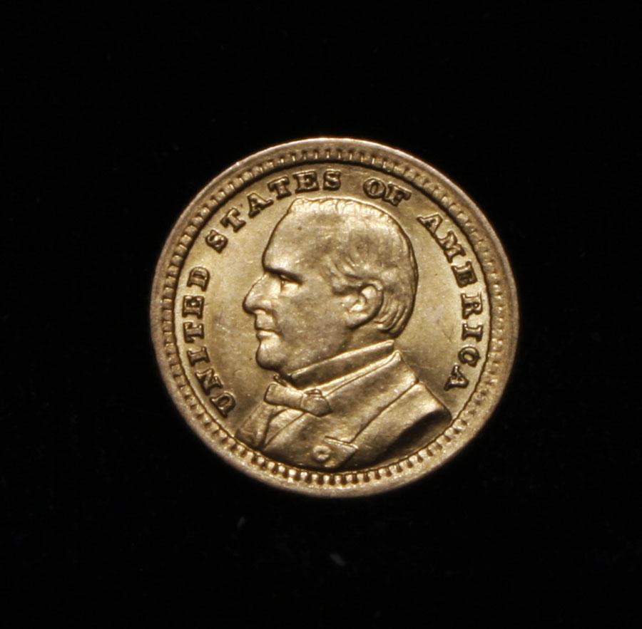 Terrific example of this scarce Gold commemorative. Issued in 1903 to celebrate the 100th anniversary of the Louisiana purchase. This commemorative was issued with two obverses and one reverse. The two Obverses are the McKinley and the Jefferson. The McKinley is slightly scarcer than the Jefferson, per PCGS. When the mint was considering who to put on the commemorative. Jefferson was the obvious 1st choice as he was the president at the time of the purchase from France and the 2nd choice was McKinley, who had died in office a year prior and had been the one who originally signed the legislation for the minting of the coin. Coin World's Coin Values lists the McKinley in ms63 at $1100 and The Wholesale Greysheet lists the McKinley ms63 at $650. (note the Greysheet has the Jefferson as $750, and throughout the grades they show the Jefferson at a higher price, PCGS and coin World shows the opposite) Estimated Value $800