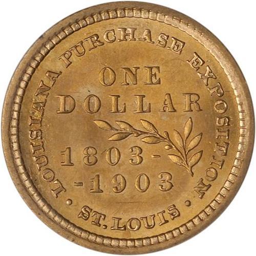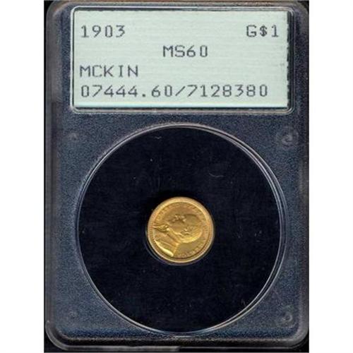 <b>1903 Louisiana Purchase-McKinley Gold Dollar. PCGS graded MS60.</b> A lustrous example with a few light marks and hairlines, otherwise would be choice <b>(PCGS # 7444)</b>