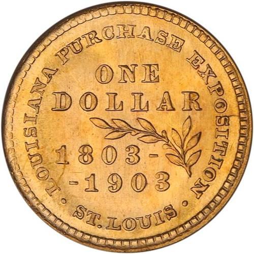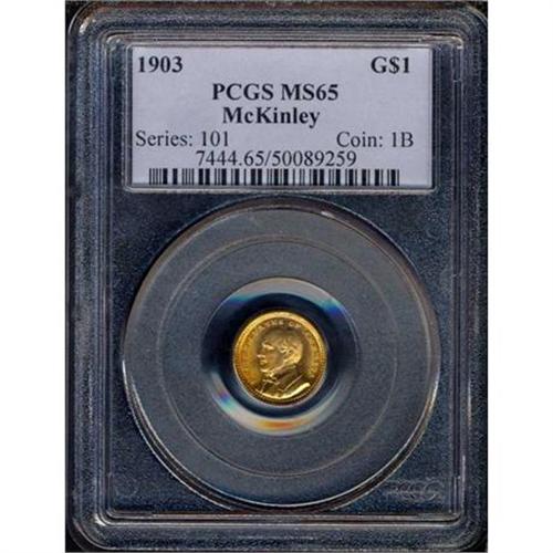 <b>1903 Louisiana Purchase-McKinley Gold Dollar. PCGS graded MS65.</b> Pleasant satin envelops all surfaces under its golden radiance, with light toning <b>(PCGS # 7444)</b> <i>