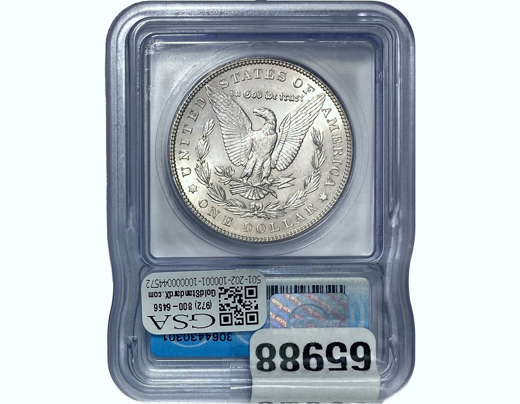 e. Coins sold referencing a third-party grading service are sold “AS IS” without any express or implied warranty, except for a guarantee by GSA that they are genuine. Removal or alteration of the holder, voids all of Bidder’s claims concerning that Product. Certain warranties may be available from the grading services and Bidders are referred to them for further details: Numismatic Guaranty Corporation (NGC), PO Box 4776, Sarasota, FL 34230, www.ngccoin.com/services/writtenguarantee.asp; Professional Coin Grading Services (PCGS), PO Box 9458, Newport Beach, CA 92658, www.pcgs.com/guarantee.html; ANACS, 6555 S. Kenton St., Ste. 303, Englewood, CO 80111; and Independent Coin Grading Co. (ICG), 7901 East Bellview, Ave., Suite 50, Englewood, CO 80111.