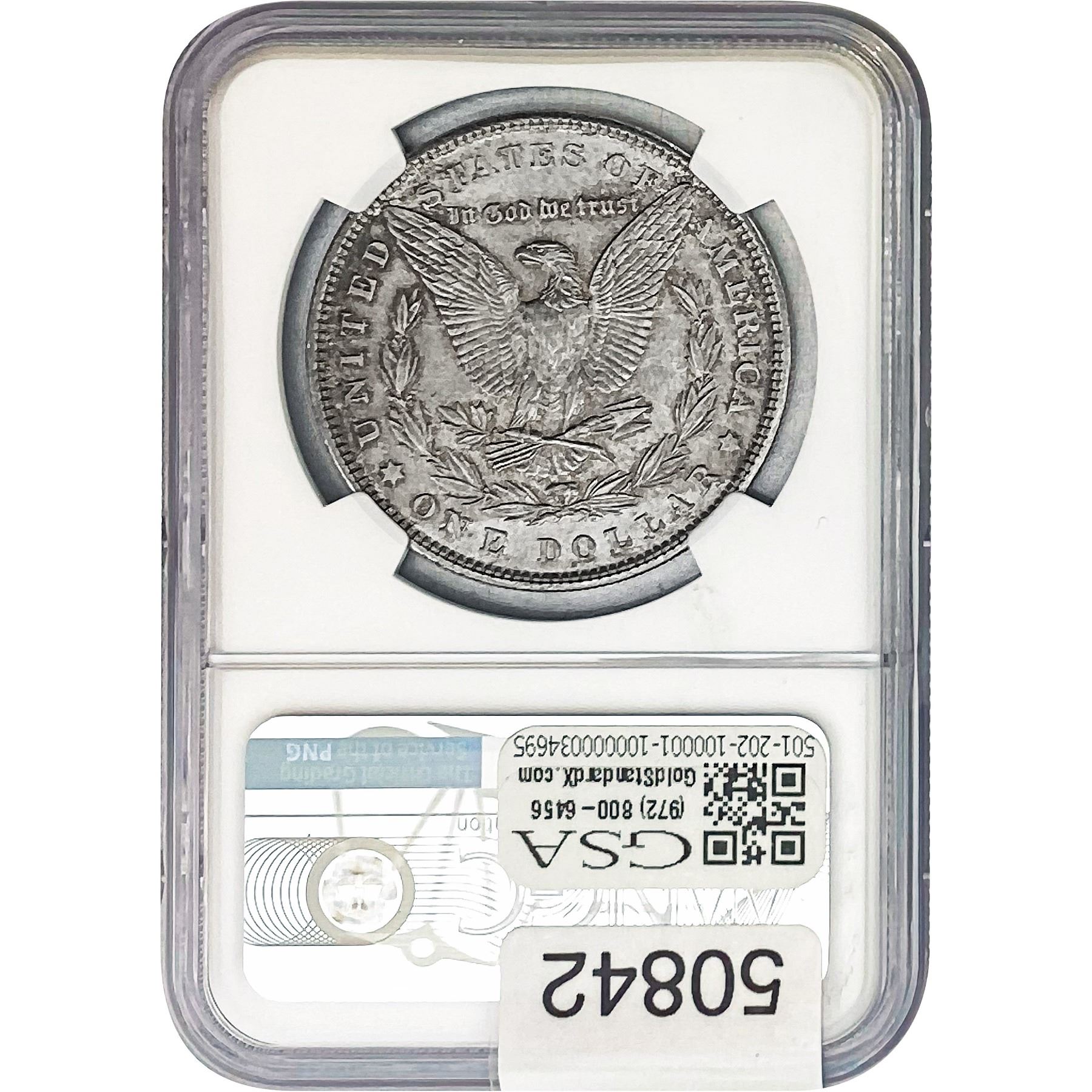 e. Coins sold referencing a third-party grading service are sold “AS IS” without any express or implied warranty, except for a guarantee by GSA that they are genuine. Removal or alteration of the holder, voids all of Bidder’s claims concerning that Product. Certain warranties may be available from the grading services and Bidders are referred to them for further details: Numismatic Guaranty Corporation (NGC), PO Box 4776, Sarasota, FL 34230, www.ngccoin.com/services/writtenguarantee.asp; Professional Coin Grading Services (PCGS), PO Box 9458, Newport Beach, CA 92658, www.pcgs.com/guarantee.html; ANACS, 6555 S. Kenton St., Ste. 303, Englewood, CO 80111; and Independent Coin Grading Co. (ICG), 7901 East Bellview, Ave., Suite 50, Englewood, CO 80111.