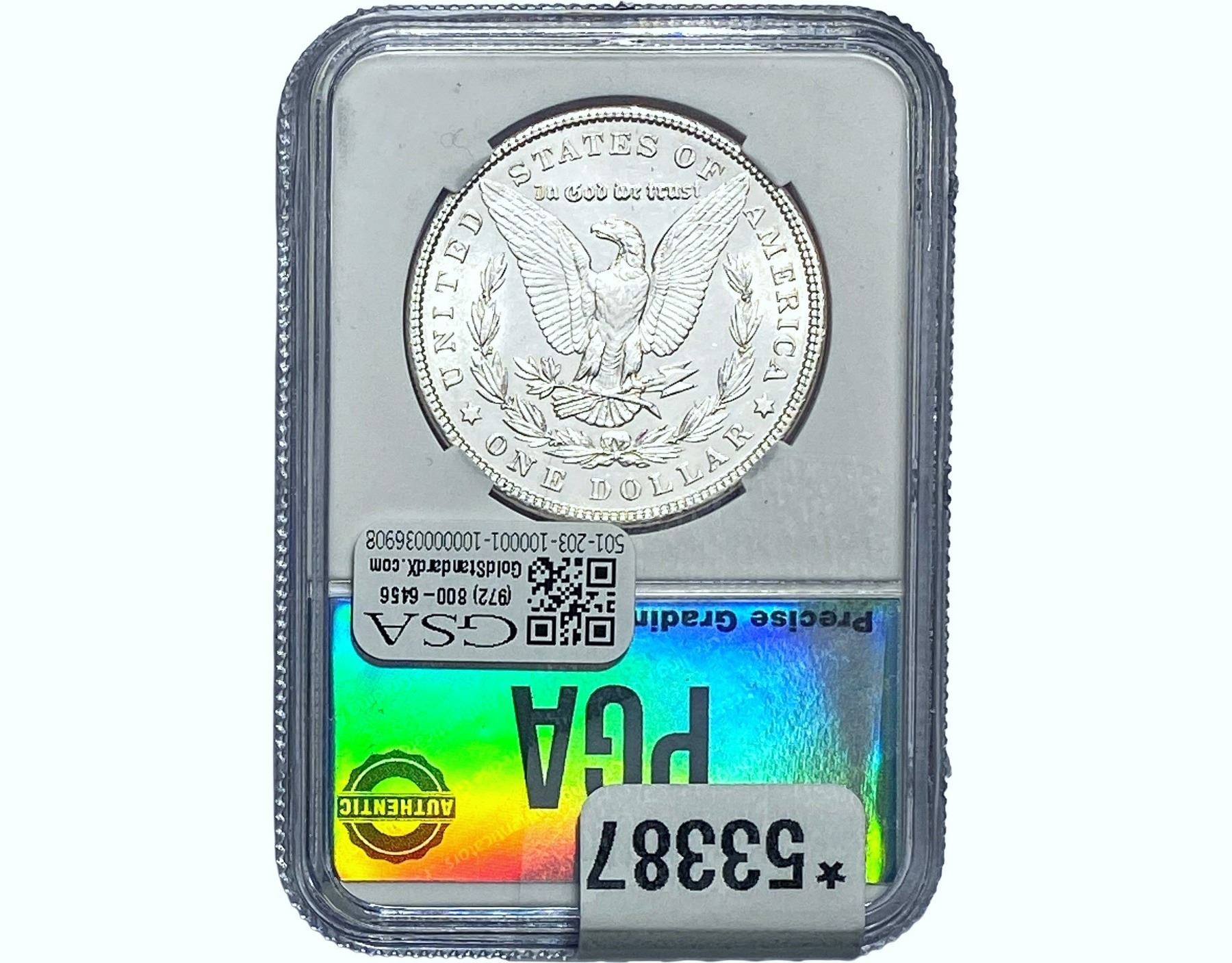 l. All non-certified coins and currency are guaranteed genuine, but are not guaranteed as to grade, since grading is a matter of opinion, an art and not a science, and therefore the description rendered by GSA or any third-party grading service may not agree with the opinion of others (including trained experts), and the same expert may not grade the same item with the same grade at two different times. GSA may, but is not obligated to, express an opinion as to non-certified numismatic items, in GSA’s opinion, or by its employees’ experience and the current interpretation of the American Numismatic Association’s standards as of the date the catalog was prepared. There is no guarantee or warranty expressed or implied that the grading opinions utilized by GSA, if any, will meet the standards of any grading service at any time in the future.
