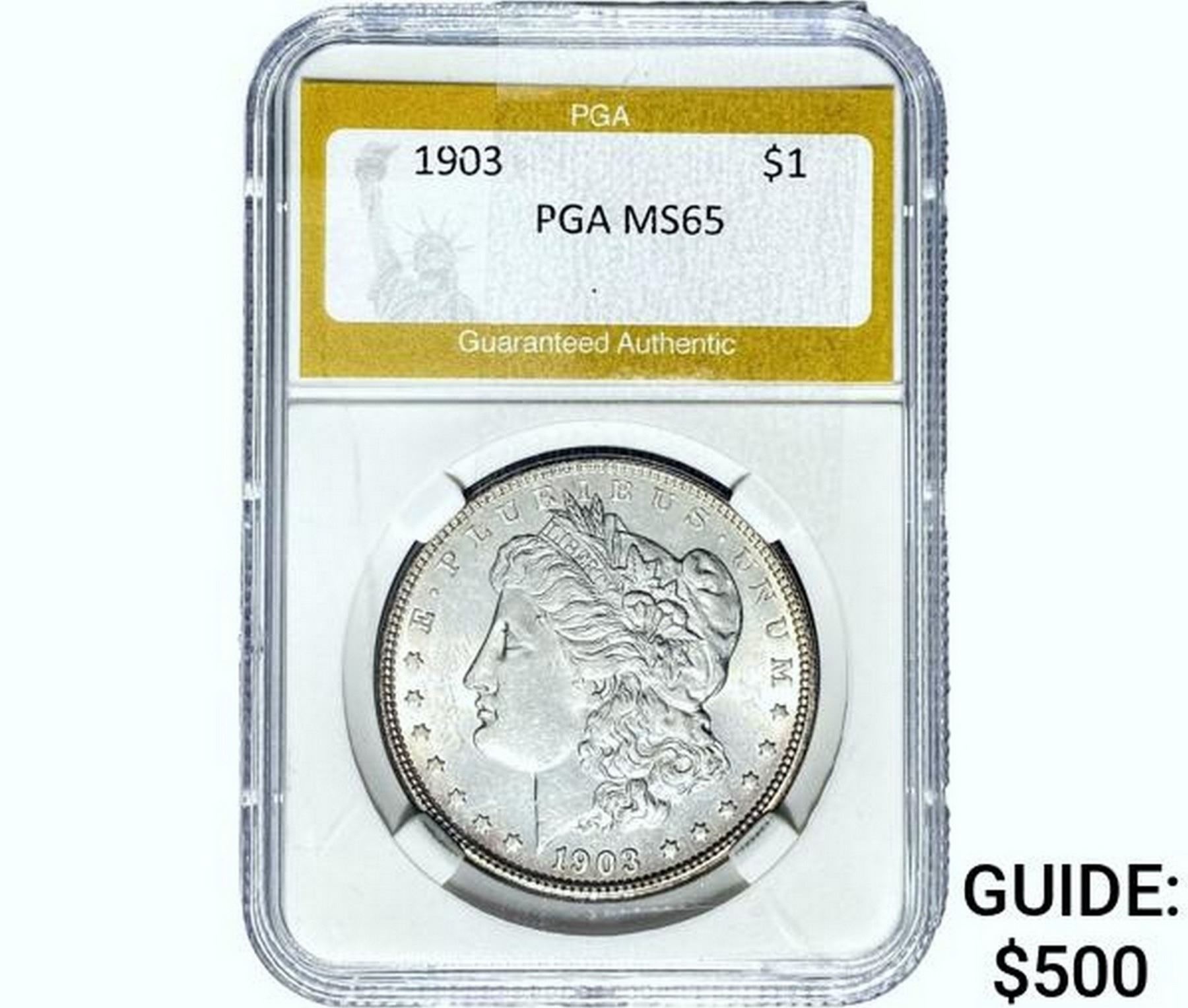 COINS AND CURRENCY LISTED IN GSA’S CATALOG AS GRADED AND ENCAPSULATED BY PCGS, NGC, ANACS, ICG, PCGS CURRENCY, PMG, PCGS BANKNOTE GRADING, CMC OR ANY OTHER THIRD-PARTY GRADING SERVICE ARE LIKEWISE SOLD “AS-IS” EXCEPT AS EXPRESSLY SET FORTH HEREIN. ALL THIRD-PARTY GRADING SERVICE GUARANTEES, INCLUDING AUTHENTICITY, ARE THE SOLE RESPONSIBILITY OF THE THIRD-PARTY GRADING SERVICE AND NOT WARRANTIES OR GUARANTEES OF GSA. BIDDERS SHOULD CONTACT THESE THIRD-PARTY GRADING SERVICES DIRECTLY WITH RESPECT TO ANY CLAIMS OR QUESTIONS THEY MAY HAVE CONCERNING THEIR GUARANTEES AND WARRANTIES. BIDDERS ACKNOWLEDGE AND AGREE THAT AUCTIONEER IS NOT BOUND BY OR LIABLE FOR ANY OPINION OR CERTIFICATION BY ANY THIRD-PARTY GRADING SERVICE. REMOVAL OF A PRODUCT FROM ITS PROTECTIVE CASING OR HOLDER OR ALTERATION OF ANY COIN HOLDER WAIVES ALL RIGHTS CONCERNING THE PRODUCT CONTAINED THEREIN.