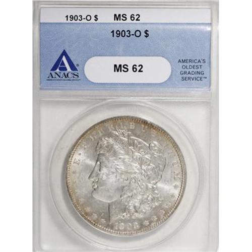 <B>1903-O $1 MS62 ANACS.</B></I> NGC Census: (318/4271). PCGS Population (674/7818). Mintage: 4,450,000. Numismedia Wsl. Price for NGC/PCGS coin in MS62: $350. (#7286)<BR><BR><B>Coin Engraver:</B> George T. Morgan<BR><BR><b>Shipping:</b> Coins & Currency (<a target="_blank" href="http://www.heritageauctions.com/common/shipping.php">view shipping information</a>)
