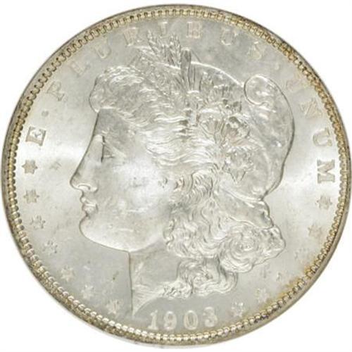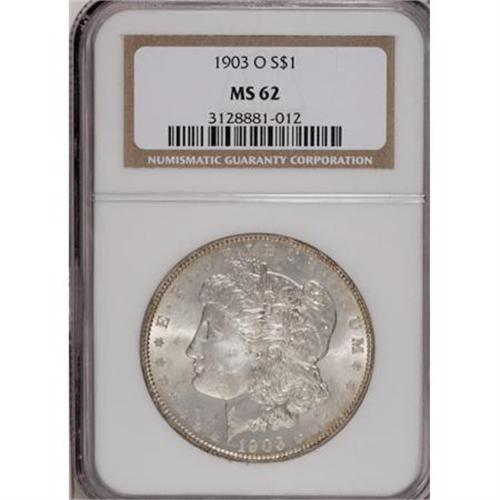 <B>1903-O $1 MS62 NGC.</B></I> NGC Census: (327/4360). PCGS Population (678/7910). Mintage: 4,450,000. Numismedia Wsl. Price for NGC/PCGS coin in MS62: $350. (#7286)<BR><BR><B>Coin Engraver:</B> George T. Morgan<BR><BR><b>Shipping:</b> Coins & Currency (<a target="_blank" href="http://www.heritageauctions.com/common/shipping.php">view shipping information</a>)