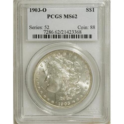<B>1903-O $1 MS62 PCGS.</B></I> PCGS Population (681/7920). NGC Census: (327/4360). Mintage: 4,450,000. Numismedia Wsl. Price for NGC/PCGS coin in MS62: $350. (#7286)<BR><BR><B>Coin Engraver:</B> George T. Morgan<BR><BR><b>Shipping:</b> Coins & Currency (<a target="_blank" href="http://www.heritageauctions.com/common/shipping.php">view shipping information</a>)