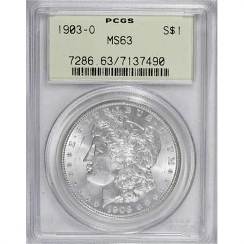 <B>1903-O $1 MS63 PCGS.</B></I> PCGS Population (2260/5480). NGC Census: (923/3285). Mintage: 4,450,000. Numismedia Wsl. Price for NGC/PCGS coin in MS63: $367. (#7286)<BR><BR><B>Coin Engraver:</B> George T. Morgan<BR><BR><b>Shipping:</b> Coins & Currency (<a target="_blank" href="http://www.heritageauctions.com/common/shipping.php">view shipping information</a>)