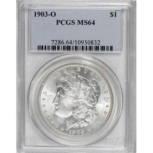 <B>1903-O $1 MS64 PCGS.</B></I> PCGS Population (3240/2240). NGC Census: (1875/1410). Mintage: 4,450,000. Numismedia Wsl. Price for NGC/PCGS coin in MS64: $400. (#7286)<BR><BR><B>Coin Engraver:</B> George T. Morgan<BR><BR><b>Shipping:</b> Coins & Currency (<a target="_blank" href="http://www.heritageauctions.com/common/shipping.php">view shipping information</a>)