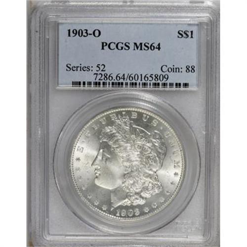 <B>1903-O $1 MS64 PCGS.</B></I> PCGS Population (3254/2257). NGC Census: (1875/1410). Mintage: 4,450,000. Numismedia Wsl. Price for NGC/PCGS coin in MS64: $400. (#7286)<BR><BR><B>Coin Engraver:</B> George T. Morgan<BR><BR><b>Shipping:</b> Coins & Currency (<a target="_blank" href="http://www.heritageauctions.com/common/shipping.php">view shipping information</a>)