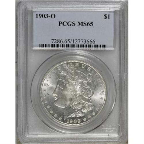 <B>1903-O $1 MS65 PCGS.</B></I> PCGS Population (1749/546). NGC Census: (1120/340). Mintage: 4,450,000. Numismedia Wsl. Price for NGC/PCGS coin in MS65: $560. (#7286)<BR><BR><B>Coin Engraver:</B> George T. Morgan<BR><BR><b>Shipping:</b> Coins & Currency (<a target="_blank" href="http://www.heritageauctions.com/common/shipping.php">view shipping information</a>)