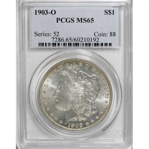 <B>1903-O $1 MS65 PCGS.</B></I> PCGS Population (1743/545). NGC Census: (1119/333). Mintage: 4,450,000. Numismedia Wsl. Price for NGC/PCGS coin in MS65: $560. (#7286)<BR><BR><B>Coin Engraver:</B> George T. Morgan<BR><BR><b>Shipping:</b> Coins & Currency (<a target="_blank" href="http://www.heritageauctions.com/common/shipping.php">view shipping information</a>)
