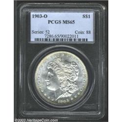 <TR><TD width="100%"><TABLE cellSpacing=1 cellPadding=3 width="100%" border=0><TBODY><TR><TD width="100%" bgColor=#79735c><FONT face=arial color=#ffffff size=3><B>Description</B> </FONT></TD></TR><TR><TD width="100%" bgColor=#ffffff><FONT face=arial size=2><B>1903-O $1 MS65 PCGS.</B></I> A bright and attractive Gem, sharply struck and well preserved. There are only a few trivial surface blemishes in evidence, as expected for the assigned grade, with light amounts of milky patina in the fields. </FONT></TD></TR></TBODY></TABLE></TD></TR></TBODY></TABLE><BR><A name=PricesRealized></A><TABLE cellSpacing=0 cellPadding=0 width="100%" bgColor=#000000 border=0><TBODY><TR><TD width="100%"><TABLE cellSpacing=1 cellPadding=3 width="100%" border=0><TBODY><TR><TD width="100%" bgColor=#79735c><A name=PR><FONT face=arial color=#ffffff size=3><B>Previous Prices from Heritage Auctions</B> </FONT></A></TD></TR><TR><TD bgColor=#f6f6ed><TABLE cellSpacing=0 cellPadding=0 width="100%" border=1><TBODY><TR><TD align=middle width="33%"><B>Date</B></TD><TD align=middle width="33%"><B>Service</B></TD><TD align=middle width="33%"><B>Price</B></TD></TR><TR bgColor=whitesmoke><TD width="33%"><B>01/28/2003</B></TD><TD width="33%">PCGS</TD><TD width="33%">$356.50</TD></TR><TR bgColor=whitesmoke><TD width="33%"><B>01/28/2003</B></TD><TD width="33%">PCGS</TD><TD width="33%">$379.50</TD></TR><TR bgColor=whitesmoke><TD width="33%"><B>01/11/2003</B></TD><TD width="33%">PCGS</TD><TD width="33%">$460.00</TD></TR><TR bgColor=whitesmoke><TD width="33%"><B>01/11/2003</B></TD><TD width="33%">PCGS</TD><TD width="33%">$373.75</TD></TR><TR bgColor=whitesmoke><TD width="33%"><B>11/23/2002</B></TD><TD width="33%">PCGS</TD><TD width="33%">$368.00</TD></TR><TR bgColor=whitesmoke><TD width="33%"><B>10/29/2002</B></TD><TD width="33%">PCGS</TD><TD width="33%">$369.15</TD></TR><TR bgColor=whitesmoke><TD width="33%"><B>10/22/2002</B></TD><TD width="33%">PCGS</TD><TD width="33%">$350.75</TD></TR><TR bgColor=whitesmoke><TD width="33%"><B>10/01/2002</B></TD><TD width="33%">PCGS</TD><TD width="33%">$379.50</TD></TR><TR bgColor=whitesmoke><TD width="33%"><B>09/28/2002</B></TD><TD width="33%">PCGS</TD><TD width="33%">$402.50</TD></TR><TR bgColor=whitesmoke><TD width="33%"><B>09/28/2002</B></TD><TD width="33%">PCGS</TD><TD width="33%">$379.50</TD></TR><TR bgColor=whitesmoke><TD width="33%"><B>09/03/2002</B></TD><TD width="33%">PCGS</TD><TD width="33%">$356.50</TD></TR><TR bgColor=whitesmoke><TD width="33%"><B>06/10/2002</B></TD><TD width="33%">PCGS</TD><TD width="33%">$368.00</TD></TR><TR bgColor=whitesmoke><TD width="33%"><B>06/08/2002</B></TD><TD width="33%">PCGS</TD><TD width="33%">$368.00</TD></TR><TR bgColor=whitesmoke><TD width="33%"><B>06/08/2002</B></TD><TD width="33%">PCGS</TD><TD width="33%">$368.00</TD></TR><TR bgColor=whitesmoke><TD width="33%"><B>05/28/2002</B></TD><TD width="33%">PCGS</TD><TD width="33%">$391.00</TD></TR><TR bgColor=whitesmoke><TD width="33%"><B>04/27/2002</B></TD><TD width="33%">PCGS</TD><TD width="33%">$431.25</TD></TR><TR bgColor=whitesmoke><TD width="33%"><B>02/05/2002</B></TD><TD width="33%">PCGS</TD><TD width="33%">$345.00</TD></TR><TR bgColor=whitesmoke><TD width="33%"><B>01/29/2002</B></TD><TD width="33%">PCGS</TD><TD width="33%">$345.00</TD></TR><TR bgColor=whitesmoke><TD width="33%"><B>01/12/2002</B></TD><TD width="33%">PCGS</TD><TD width="33%">$373.75</TD></TR><TR bgColor=whitesmoke><TD width="33%"><B>12/04/2001</B></TD><TD width="33%">PCGS</TD><TD width="33%">$360.00</TD></TR><TR bgColor=whitesmoke><TD width="33%"><B>11/15/2001</B></TD><TD width="33%">PCGS</TD><TD width="33%">$345.00</TD></TR><TR bgColor=whitesmoke><TD width="33%"><B>08/14/1999</B></TD><TD width="33%">PCGS</TD><TD width="33%">$379.50</TD></TR><TR bgColor=whitesmoke><TD width="33%"><B>08/08/1998</B></TD><TD width="33%">PCGS</TD><TD width="33%">$264.00</TD></TR><TR bgColor=whitesmoke><TD width="33%"><B>01/08/2000</B></TD><TD width="33%">PCGS</TD><TD width="33%">$368.00</TD></TR><TR bgColor=whitesmoke><TD width="33%"><B>08/13/1999</B></TD><TD width="33%">PCGS</TD><TD width="33%">$460.00</TD></TR><TR bgColor=whitesmoke><TD width="33%"><B>05/29/2001</B></TD><TD width="33%">PCGS</TD><TD width="33%">$340.00</TD></TR><TR bgColor=whitesmoke><TD width="33%"><B>06/02/2001</B></TD><TD width="33%">PCGS</TD><TD width="33%">$431.25</TD></TR><TR bgColor=whitesmoke><TD width="33%"><B>09/21/1996</B></TD><TD width="33%">PCGS</TD><TD width="33%">$275.00</TD></TR><TR bgColor=whitesmoke><TD width="33%"><B>09/21/1996</B></TD><TD width="33%">PCGS</TD><TD width="33%">$253.00</TD></TR><TR bgColor=whitesmoke><TD width="33%"><B>04/05/2001</B></TD><TD width="33%">PCGS</TD><TD width="33%">$333.50</TD></TR><TR bgColor=whitesmoke><TD width="33%"><B>02/06/2001</B></TD><TD width="33%">PCGS</TD><TD width="33%">$340.00</TD></TR><TR bgColor=whitesmoke><TD width="33%"><B>01/06/1996</B></TD><TD width="33%">PCGS</TD><TD width="33%">$264.00</TD></TR><TR bgColor=whitesmoke><TD width="33%"><B>01/10/1997</B></TD><TD width="33%">PCGS</TD><TD width="33%">$224.40</TD></TR><TR bgColor=whitesmoke><TD width="33%"><B>03/22/1997</B></TD><TD width="33%">PCGS</TD><TD width="33%">$230.00</TD></TR><TR bgColor=whitesmoke><TD width="33%"><B>04/26/1996</B></TD><TD width="33%">PCGS</TD><TD width="33%">$319.00</TD></TR><TR bgColor=whitesmoke><TD width="33%"><B>01/13/2002</B></TD><TD width="33%">PCGS</TD><TD width="33%">$322.00</TD></TR><TR bgColor=whitesmoke><TD width="33%"><B>09/10/1993</B></TD><TD width="33%">PCGS</TD><TD width="33%">$357.50</TD></TR><TR bgColor=whitesmoke><TD width="33%"><B>04/02/1993</B></TD><TD width="33%">PCGS</TD><TD width="33%">$286.00</TD></TR><TR bgColor=whitesmoke><TD width="33%"><B>01/06/1993</B></TD><TD width="33%">PCGS</TD><TD width="33%">$286.00</TD></TR><TR bgColor=whitesmoke><TD width="33%"><B>01/09/1999</B></TD><TD width="33%">PCGS</TD><TD width="33%">$440.00</TD></TR><TR bgColor=whitesmoke><TD width="33%"><B>02/22/1997</B></TD><TD width="33%">PCGS</TD><TD width="