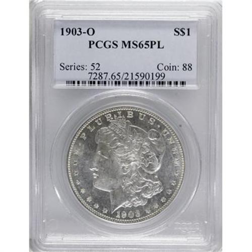 <B>1903-O $1 MS65 Prooflike PCGS.</B></I> An attractive Prooflike Gem with minor field haze and an essentially untoned appearance. Well struck with a few light marks that prevent an even higher grade. Population: 16 in 65 Prooflike, 3 finer (6/07).<BR><I>From the Diamond Head Registry Set of Prooflike Dollars.</B></I><BR><BR><B>Coin Engraver:</B> George T. Morgan<BR><BR><b>Shipping:</b> Coins & Currency (<a target="_blank" href="http://www.heritageauctions.com/common/shipping.php">view shipping information</a>\)
