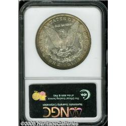 <B>1903-O<img border='0' src='http://www.heritagecoins.com/images/star.gif' width=10 height=10>$1 MS66 NGC.</B></I> Near-brilliant centers are framed by peripheral cobalt-blue and russet color. Sharply struck, with nice luster.
